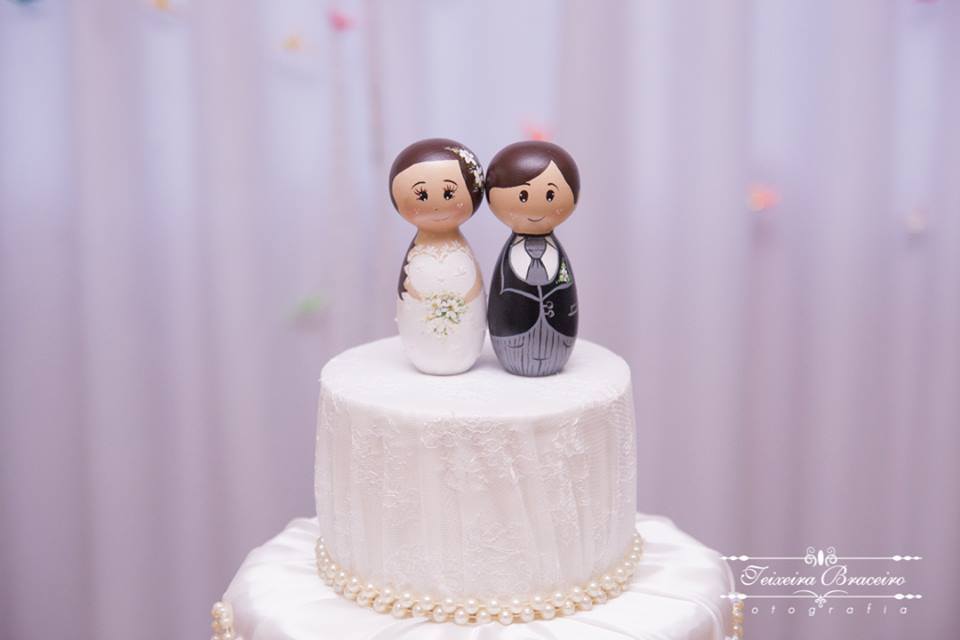 Mas, se vocês ainda são do time bonequinhos, existem as opções de bonecos “funkos” ou então os bonecos em madeira que irão, capturar a essência e a história do casal. Desde miniaturas detalhadas dos noivos, incluindo seus pets e hobbies, até representações abstratas de suas jornadas.