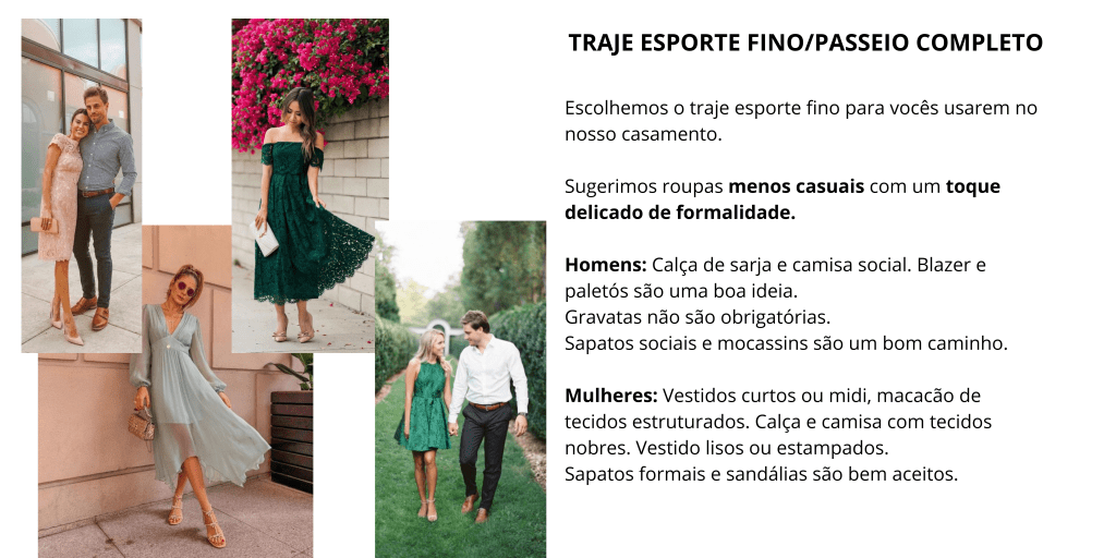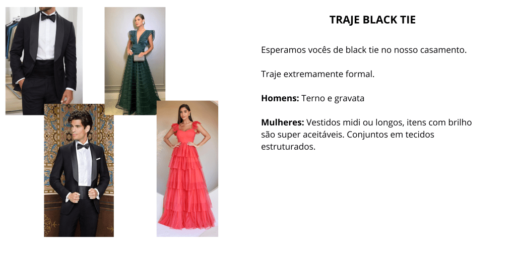 Uma dúvida muito frequente dos meus clientes é sobre o que colocar no site sobre o traje dos convidados, então, bora criar esse conteúdo completo pra vocês.